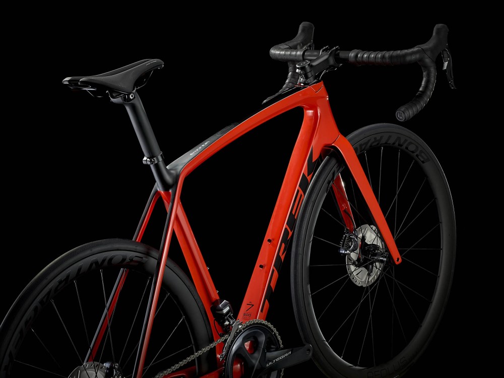 Émonda SL 7 Disc is an ultralight carbon road bike that's aerodynamically designed for more free speed while hammering flats and flying up climbs. An electronic drivetrain, lightweight carbon wheels, and other race-worthy parts make this bike a great choice for fast roadies looking for every performance advantage.