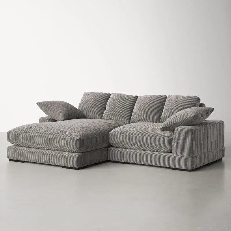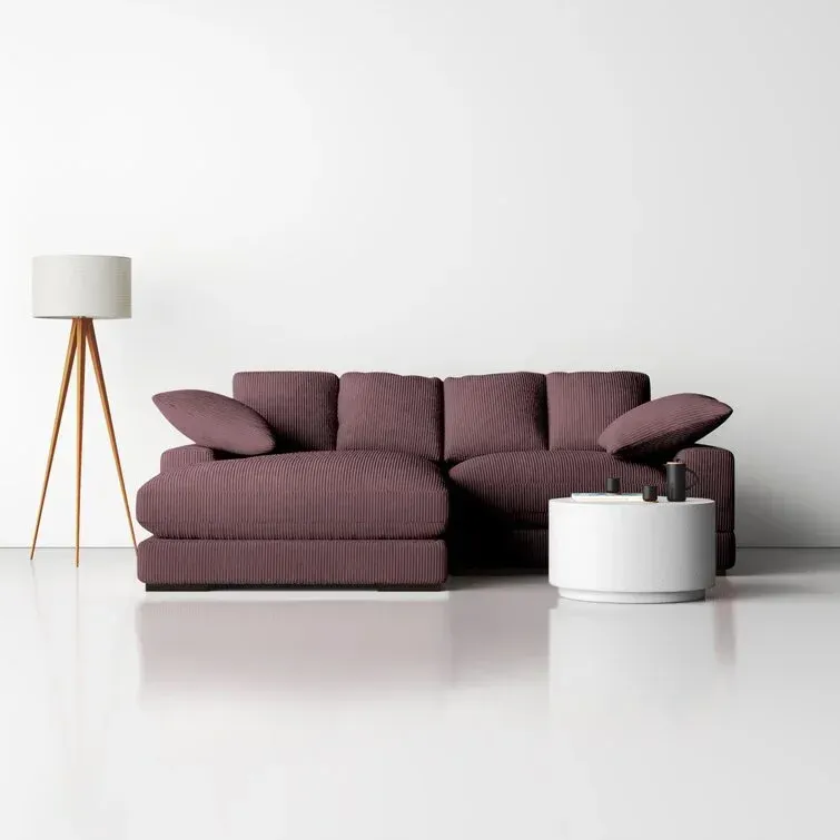 This low-slung sectional showcases a contemporary look that works with a variety of aesthetics, adding both style and substance to your space! Its square arms, squashy cushions create a clean-lined silhouette that gives your living room a tailored update. Founded atop a eucalyptus and plywood frame, it’s upholstered with foam and polyester cushioning and 100% polyester fabric in a solid neutral hue.