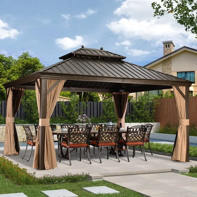 Purple leaf outdoor tent hardtop is the perfect addition to decorate your backyard features a large bright light and shade, the sun's rays and harsh heat of the large and efficient protection under the weather conditions of a large bear, because the galvanized steel roof With nets and curtains to block bugs, you can enjoy outdoor entertainment with your family and friends. This pavilion will leave a lasting impression on your guests because they enjoy your high-end, shady vacation. It will become relaxation, The preferred place to dine and enjoy the conversation. Put it in your courtyard for many years of enjoyment!