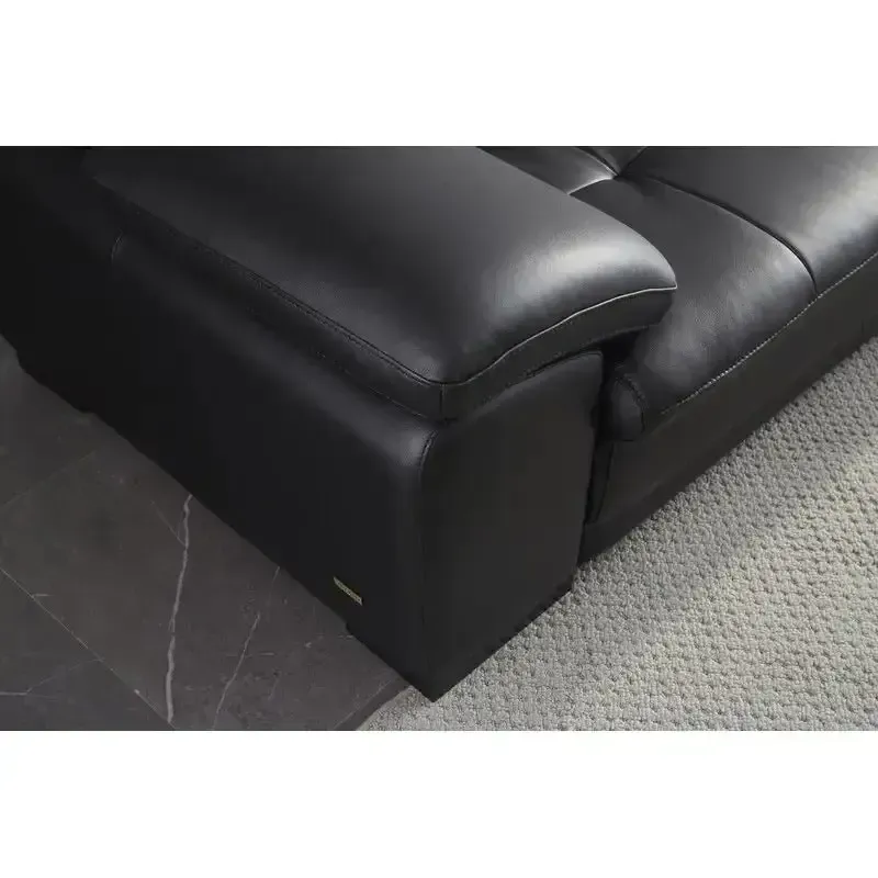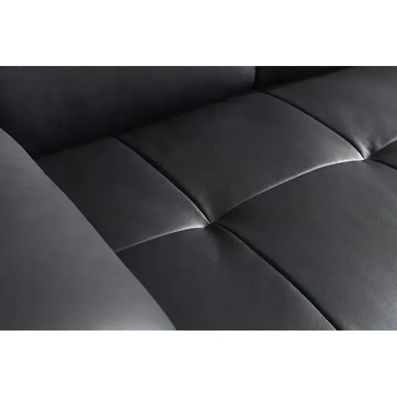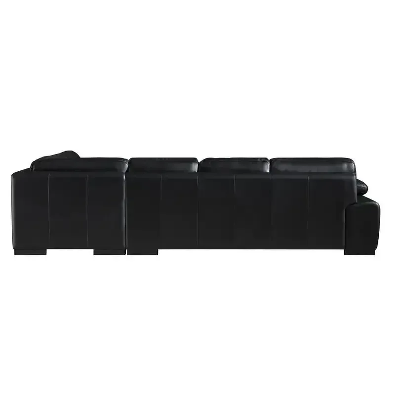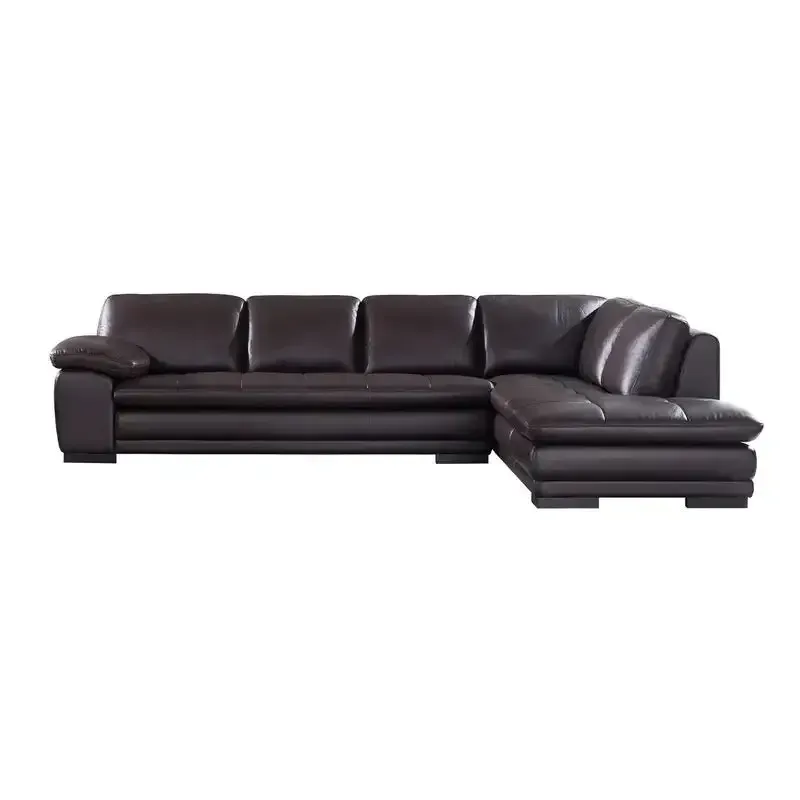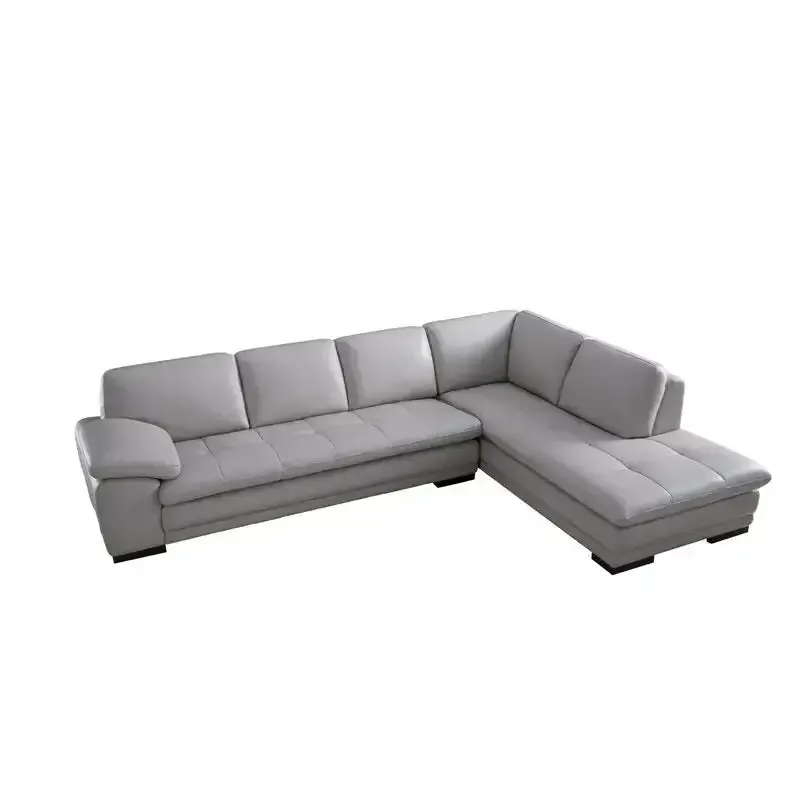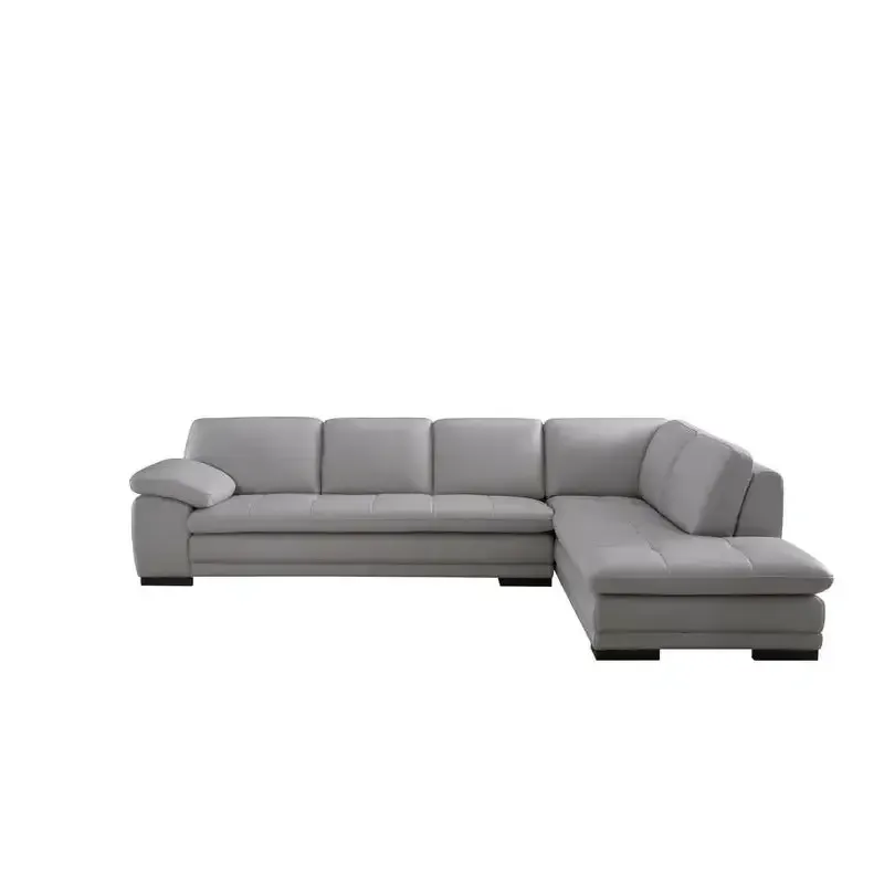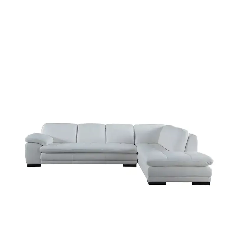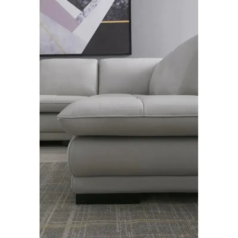 Ready to give your entertainment ensemble a refresh? Start by adding this sleek sectional for a contemporary-chic foundation. Brimming with modern elegance, this beautiful design will instantly elevate your ensemble. The clean-lined frame and neutral hue give This sectional versatility and contemporary appeal, while the top grain leather upholstery adds modern elegance. Set This sectional in your living room for a stylish place to enjoy family movie nights or sophisticated soirees. Top it with a few black and white pillows and a luxurious soft gray blanket to add inviting appeal. Next, complement the contemporary style by rolling out a white shag rug, then dot your walls with colorful abstract art to finish your ensemble.