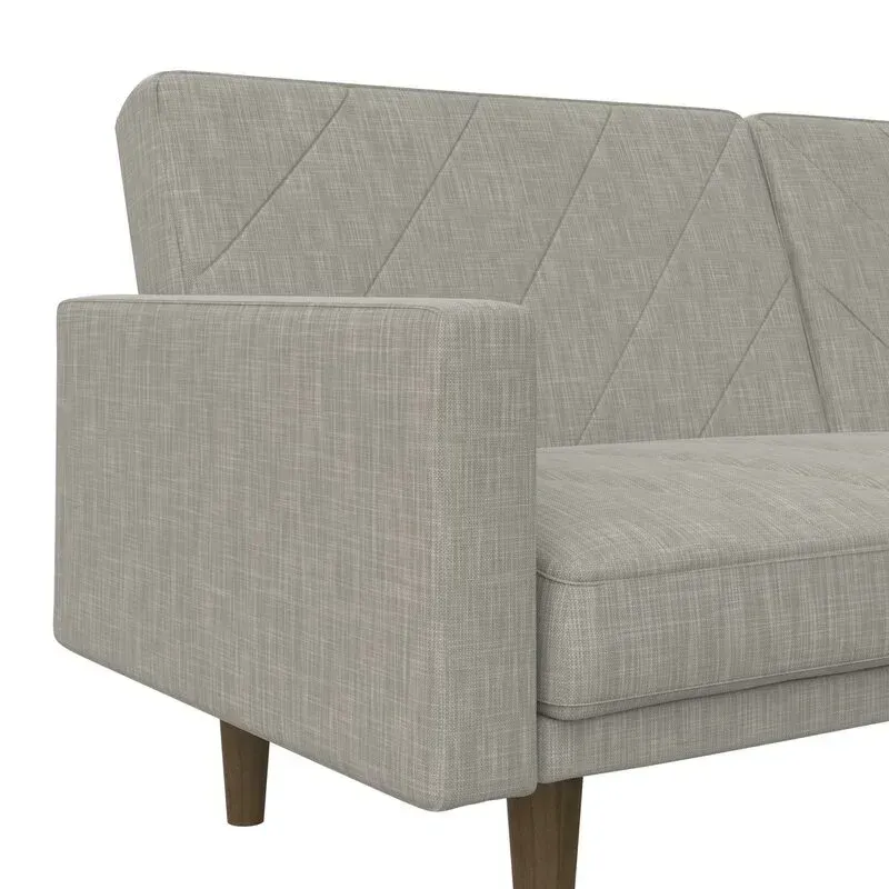 New trends in furniture design are bringing back the days of bold lines, low-profile shapes, and wood accents. The Adria Twin 78.5″ Wide Split Back Convertible Sofa combines all three for a look that will add a little modern retro to your home! Choose from a variety of finishes with intricate diagonal stitching