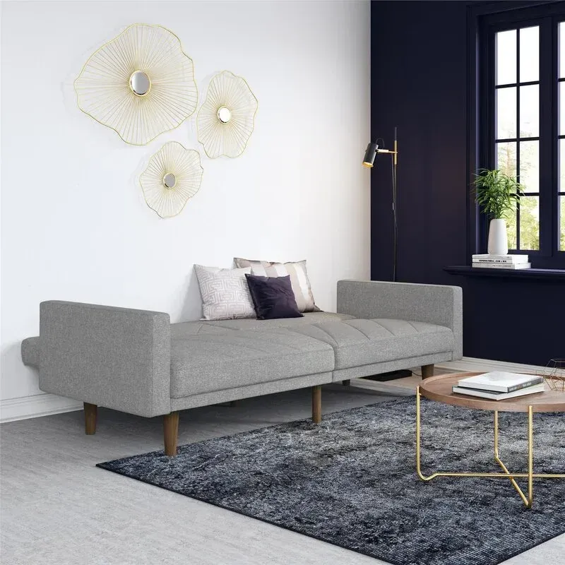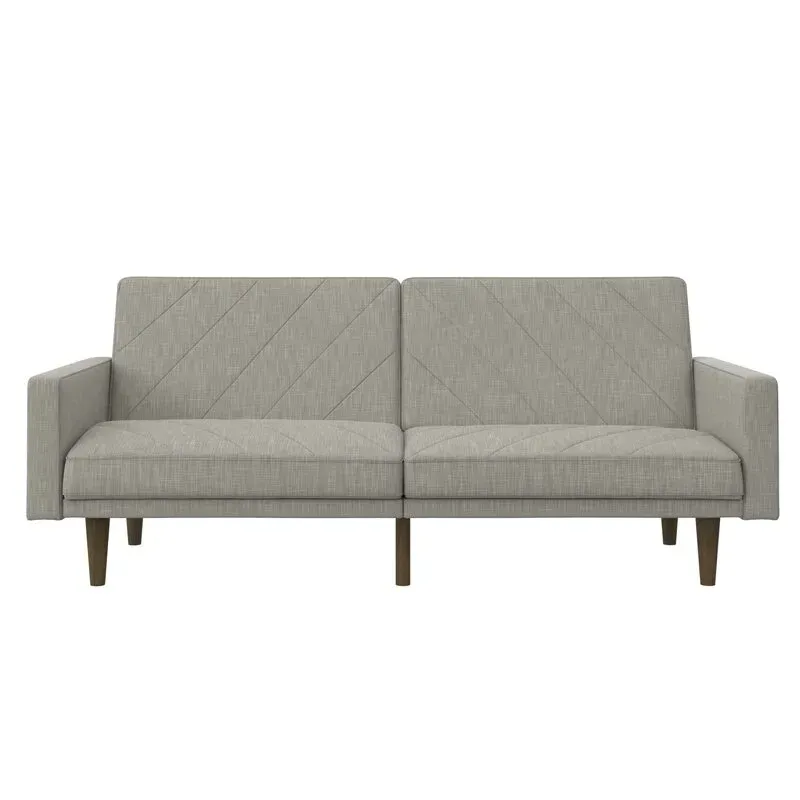 New trends in furniture design are bringing back the days of bold lines, low-profile shapes, and wood accents. The Adria Twin 78.5″ Wide Split Back Convertible Sofa combines all three for a look that will add a little modern retro to your home! Choose from a variety of finishes with intricate diagonal stitching