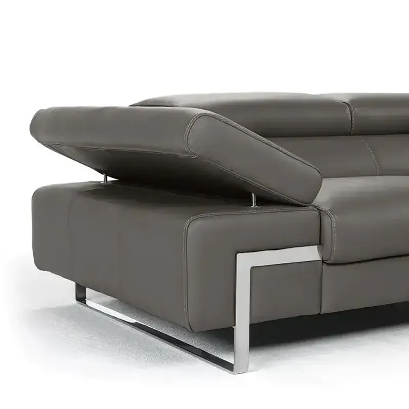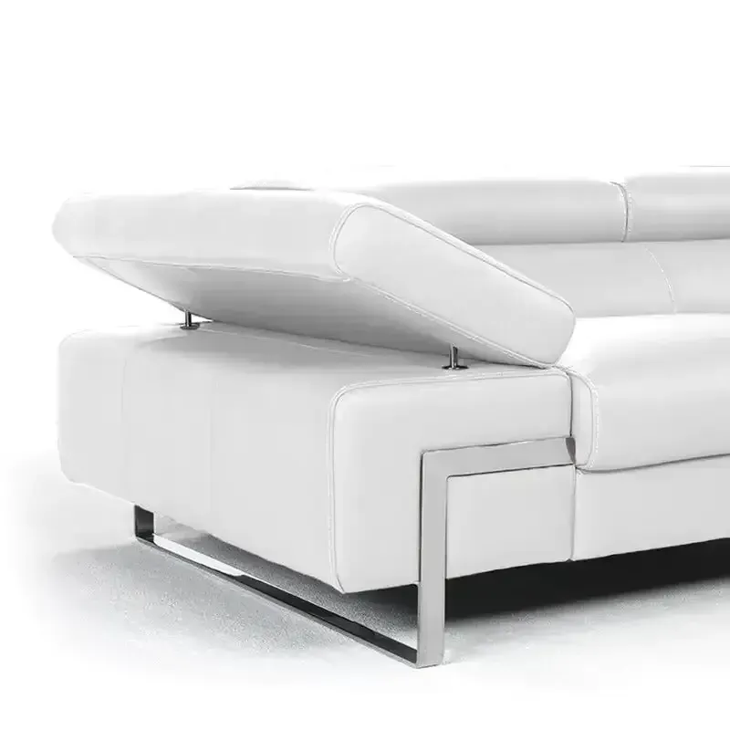 Made in Italy contemporary sectional covered in Italian top-grain leather throughout all surfaces including sides and back provide a luxurious feel and appeal. High-density foam and webbing give unrestrained support. Five adjustable headrests, adjustable armrests, and lumbar bolsters ensure unparalleled comfort to enhance any atmosphere.