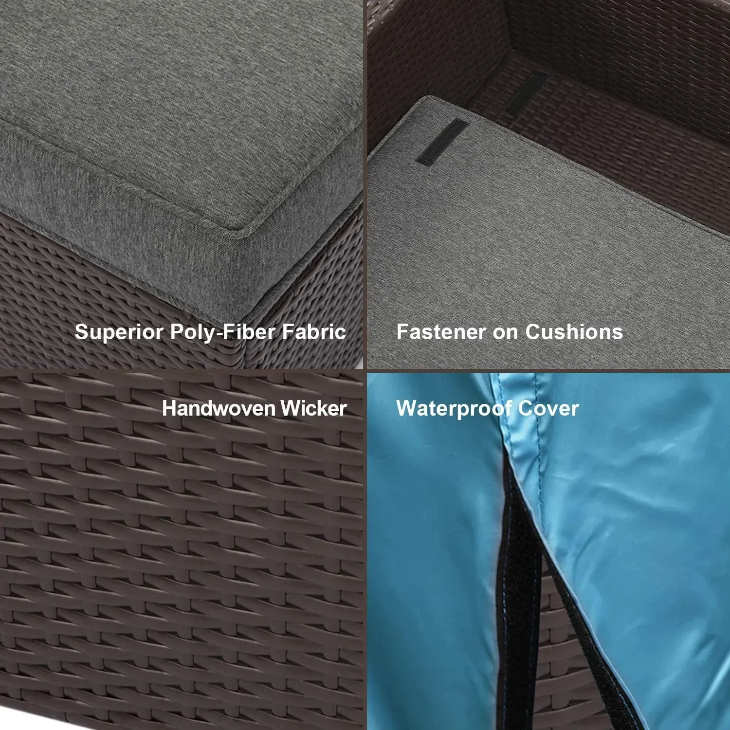 🔥 【Executive Quality】: All cushions and pillows are covered with our superior poly-fiber fabric that outperforms Olefin ( used in most patio furniture) because it's solution-dyed for longer lasting color fastness ( 2 to 3 years in direct sunlight), greater resistance to weather extremes of heat, rain and freezing and more comfortable due to better breathability of the fabric.