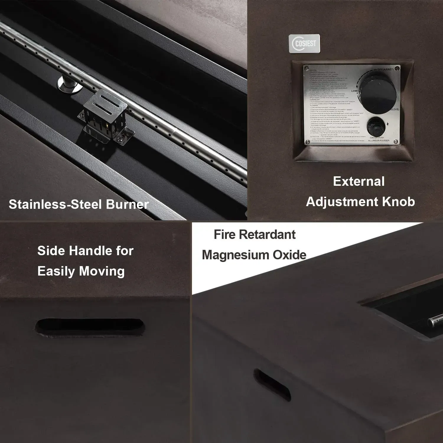 🔥【 Fashion Forward Flames 】 : The ultramodern slate gray faux stone appearance is something you'd expect to see in a chic SOHO loft space or art opening with it's simple, unobtrusive cubist style. All built to last from sturdy, fire retardant magnesium oxide with a stainless steel burner bowl. Lights with the push of a button and the flame intensity is controlled by the adjustment knob.Wind guard and waterproof cover for protection.