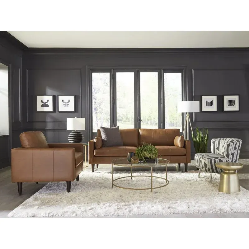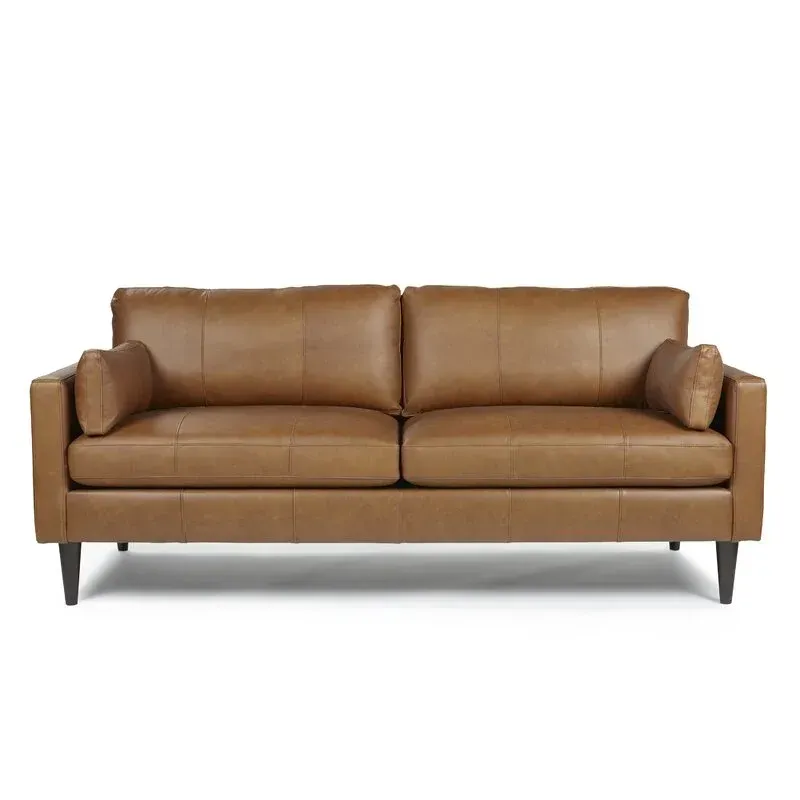 The inviting vintage style of this sofa will provide a fresh, yet classic appeal to make a statement in any space. Loose back and seat cushions are framed by sleek track arms standing atop beautifully finished tapered wood legs available in several different finish options. This collection is built to last and fully customizable with top-grain genuine leather utilized in front-facing pieces and everywhere your body touches.