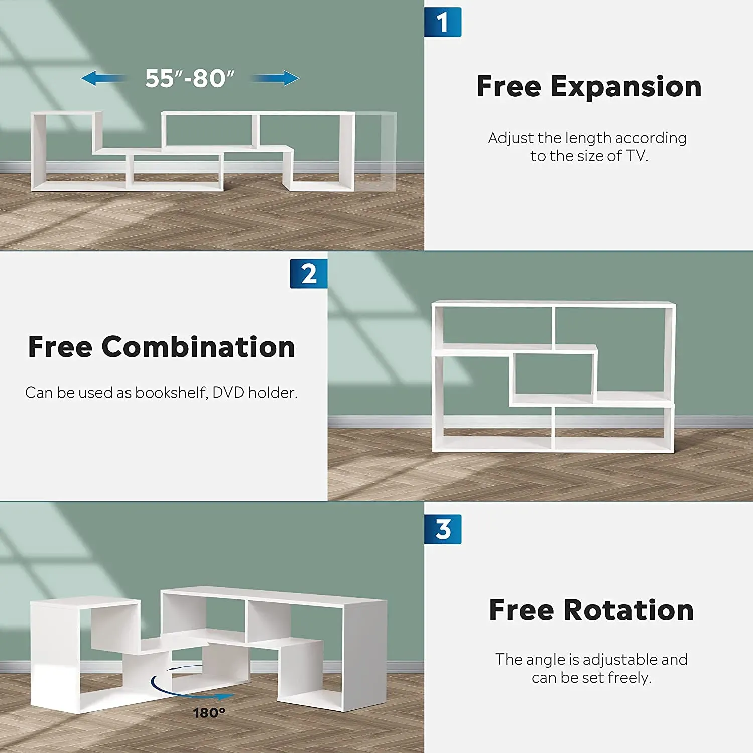 - MULTI-FUNCTION: Adjustable size and multiple combinations fit as television table, hallway table, sofa table, entertainment center, media stand, storage bookshelf console, etc.