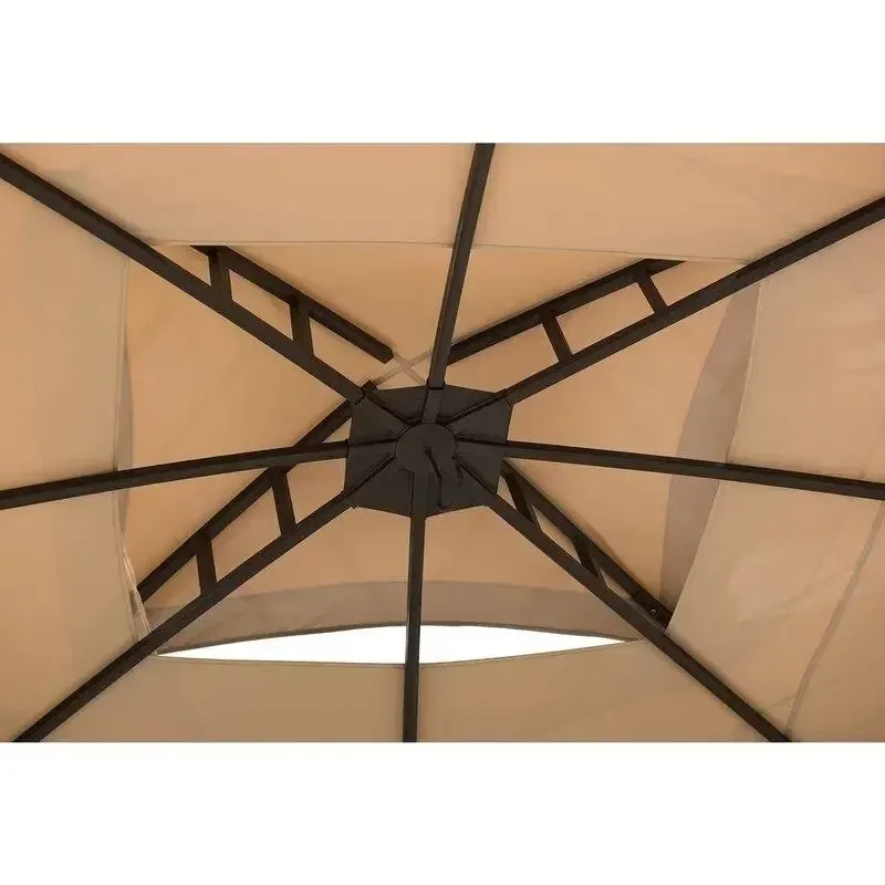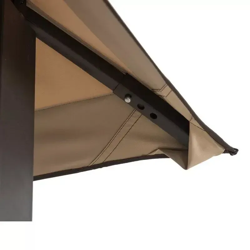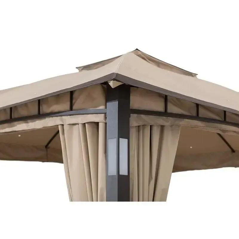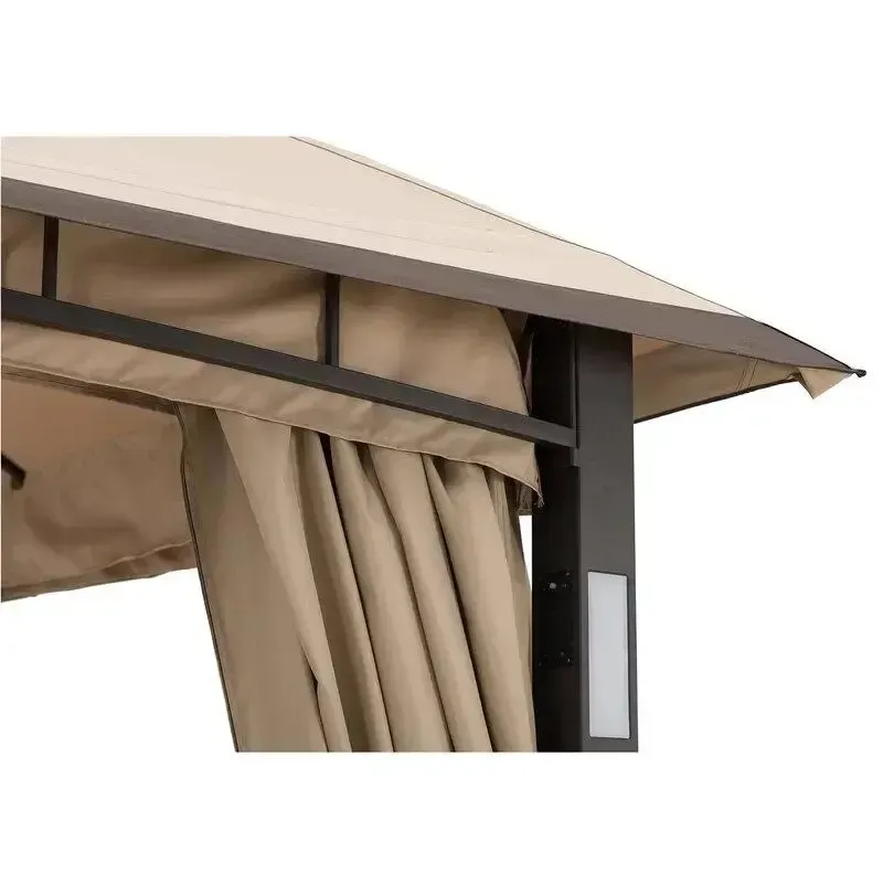 Expand your living space by moving the indoors outside to create an end-of-the-day oasis that��s the perfect spot for entertaining family and friends. This 12 ft. x 10 ft. gazebo by the world��s leading ready-to-assemble outdoor structure maker, Sunjoy, creates the perfect outdoor setting. Enjoy a covered spot outdoors under the rust-resistant powder-coated steel frame with a weather-resistant fabric canopy. Convenient battery powered LED lighting is incorporated into each frame post. In addition, enjoy your favorite music with Bluetooth enabled sound. Included privacy curtains may prevent prying eyes and the included mosquito netting will keep bugs away. Set the mood by suspending a chandelier from the incorporated ceiling hook for functional light and high design. With straight-forward, easy-to-follow assembly instructions you��ll be relaxing with your beverage of choice in your favorite new outdoor living space for years to come.