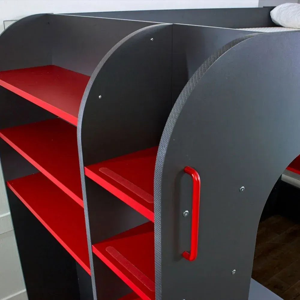 The PodBed Grey and Red Wooden High Sleeper Gaming Bed has been designed to be long-lasting and durable to meet your teenager's needs as they grow. It is also easy to self-assemble in the home as it is supplied with detailed instructions that are very simple to read.