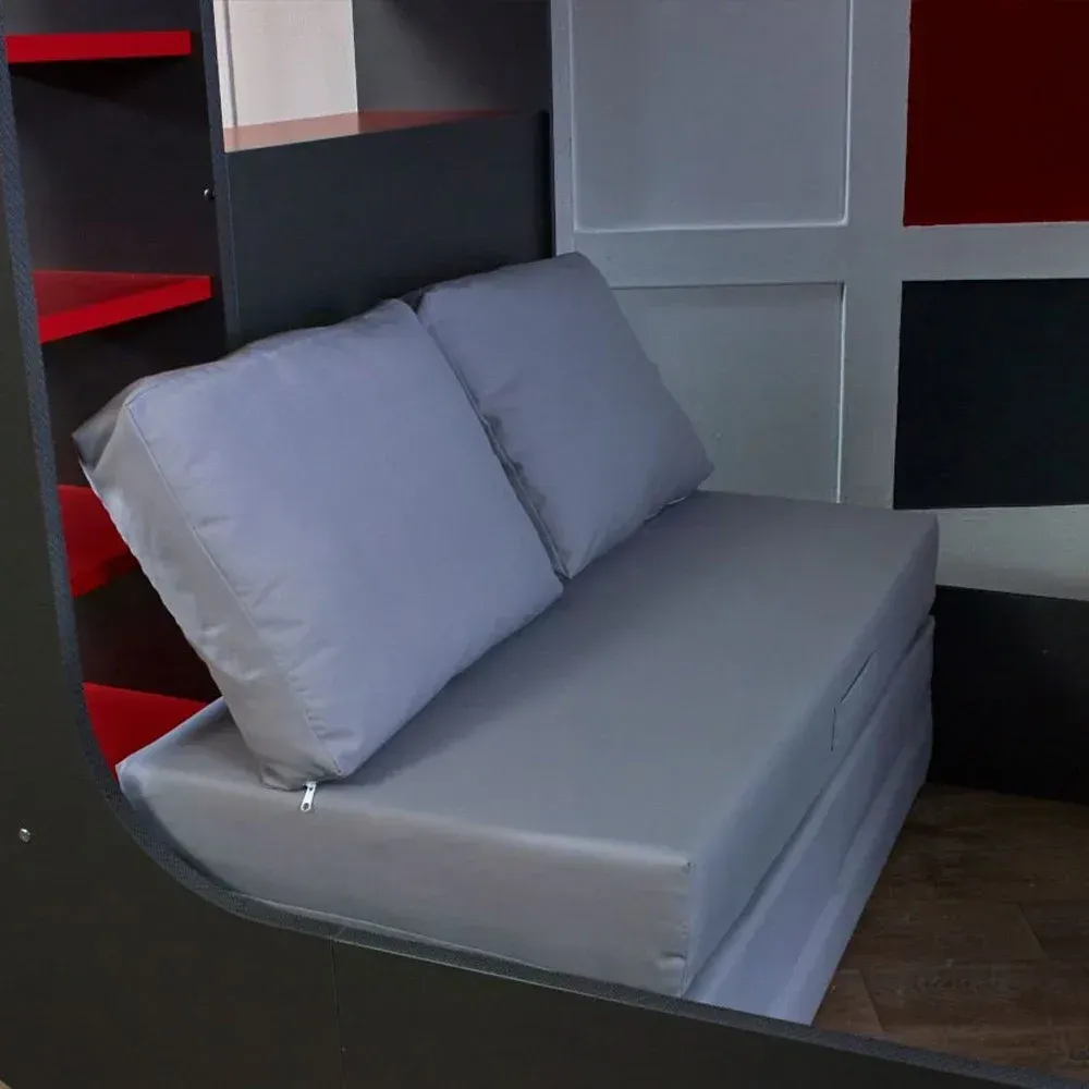 Manufactured from the highest quality materials, the PodBed Grey and Red Wooden Gaming Bed with Sofa is durable and long-lasting