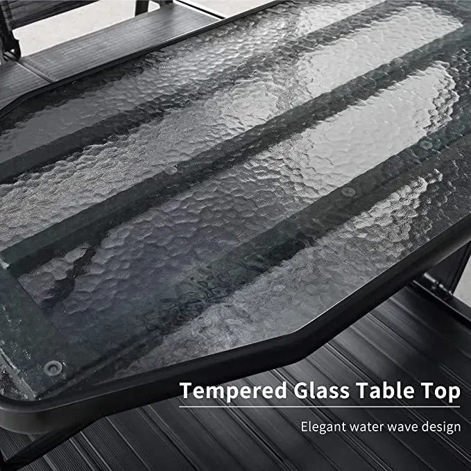 【Water Wave Glass Table】Elegant tempered glass table top for drinks and snacks, easy to clean. It is an ideal place for dining, snacks and drinks for outside.