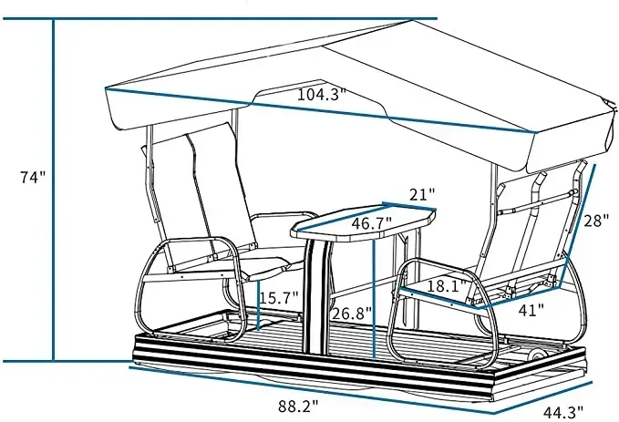 Overall Dimensions: 74"(H) X 88.2"(W) X 44.3"(D)