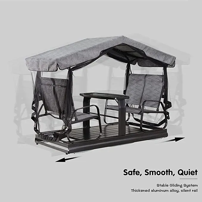 【Smooth Gliding】Thick aluminum alloy with rolling glide floor system, allow each person to swing at glider benches.