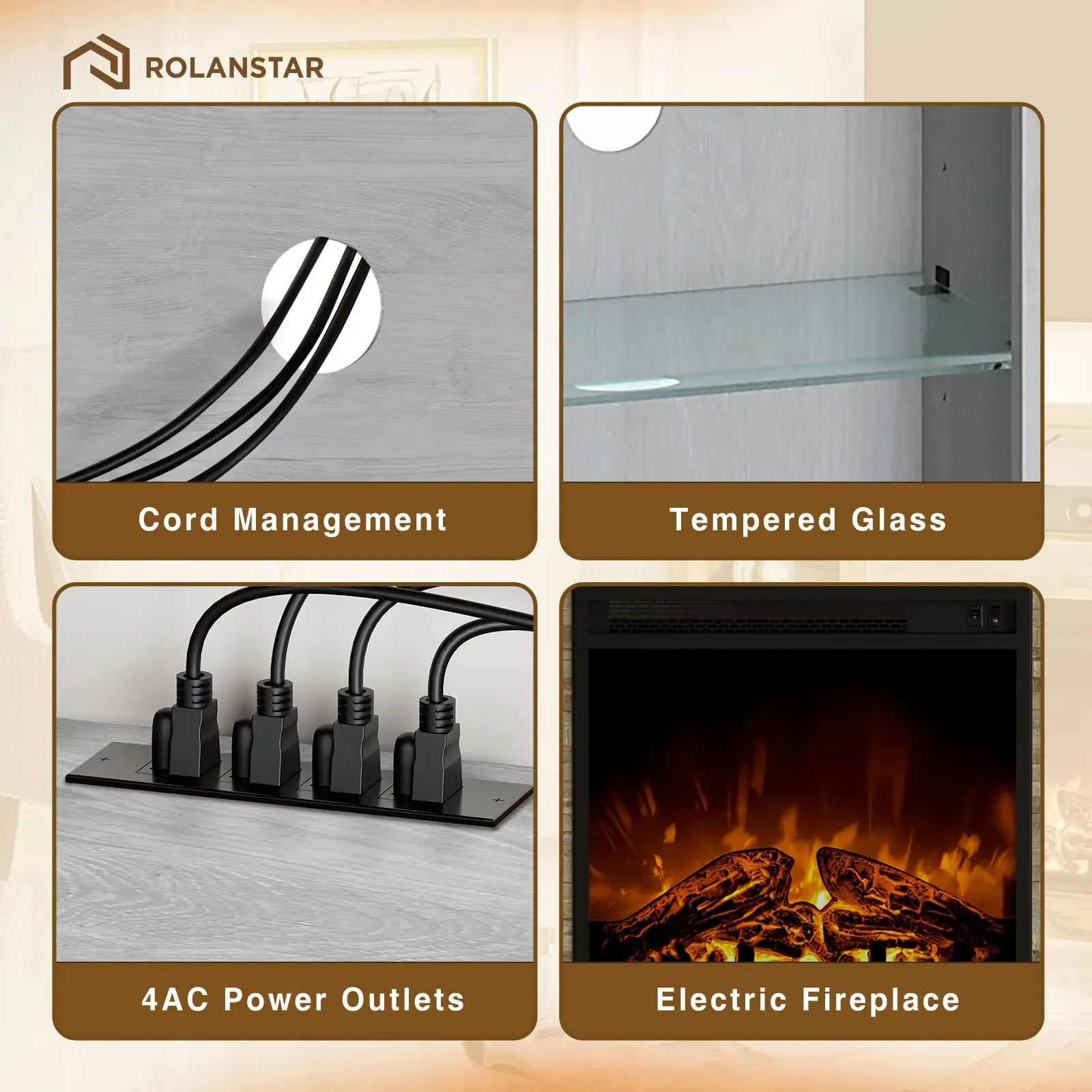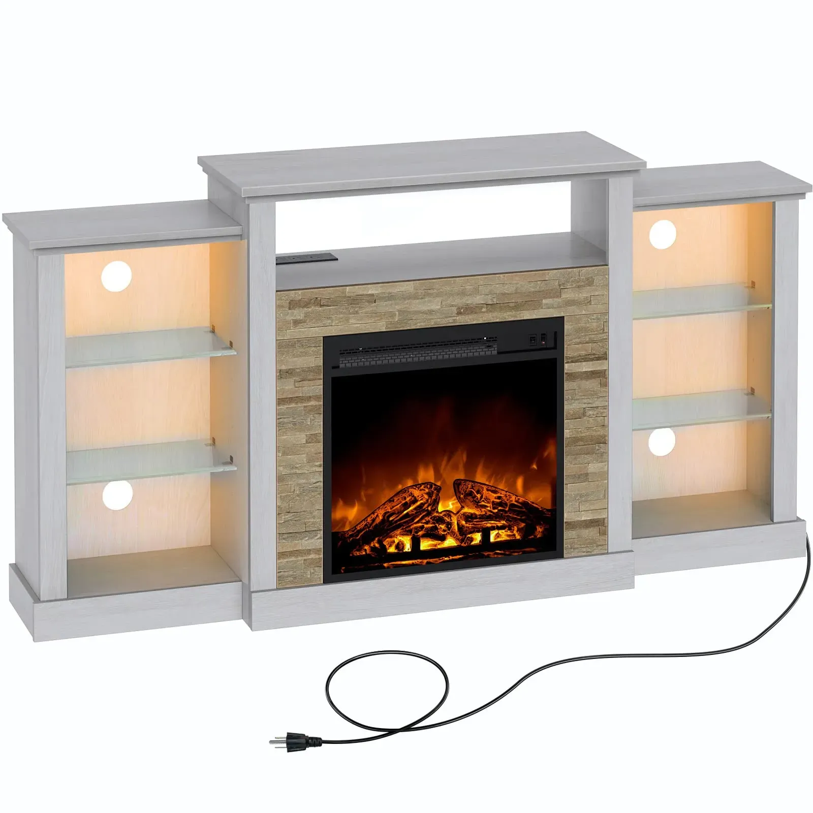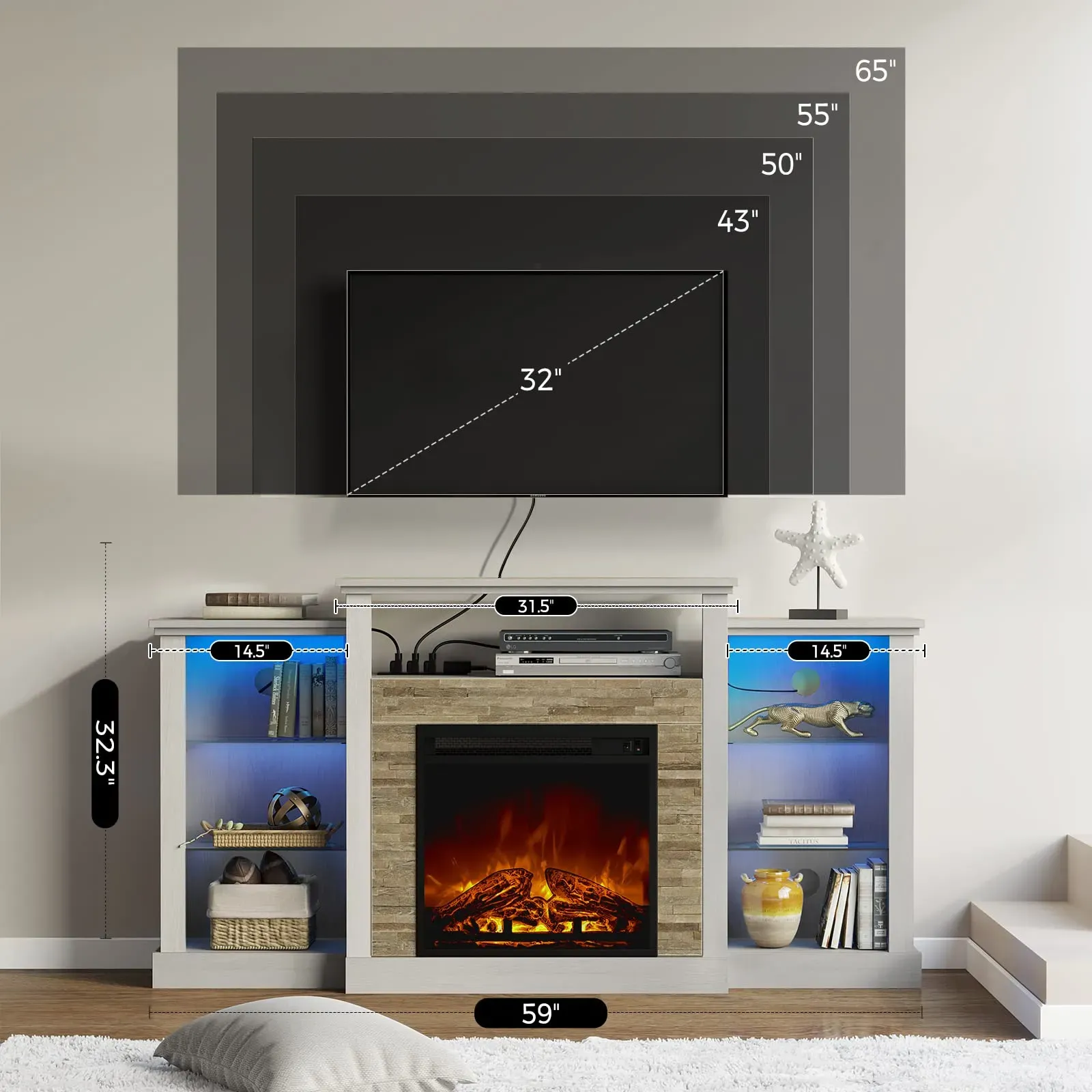 - ��Stay Warm with Fireplace TV Stand��Turn on the fireplace built into this TV stand and enjoy your winter night. The multi-color RGB LED lights are convenient to match atmosphere of your room and adding both warmth and ambiance.Heats rooms up to 400 Square feet.
