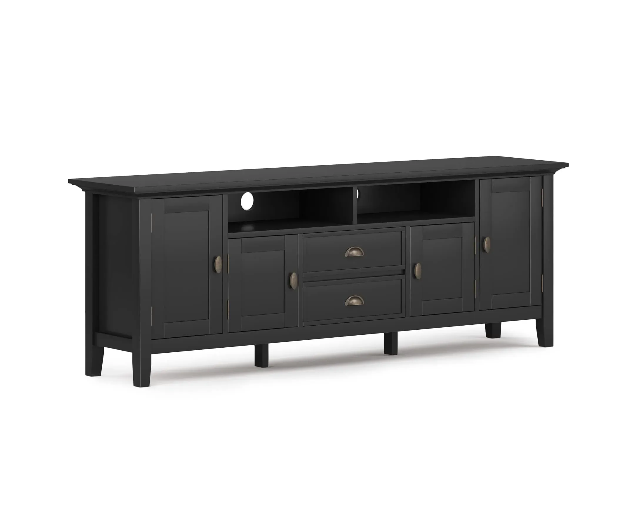 - Extra wide TV Stand is perfect for TVs up to 80 inches includes cord management cut-outs for easy installation of TV and media components