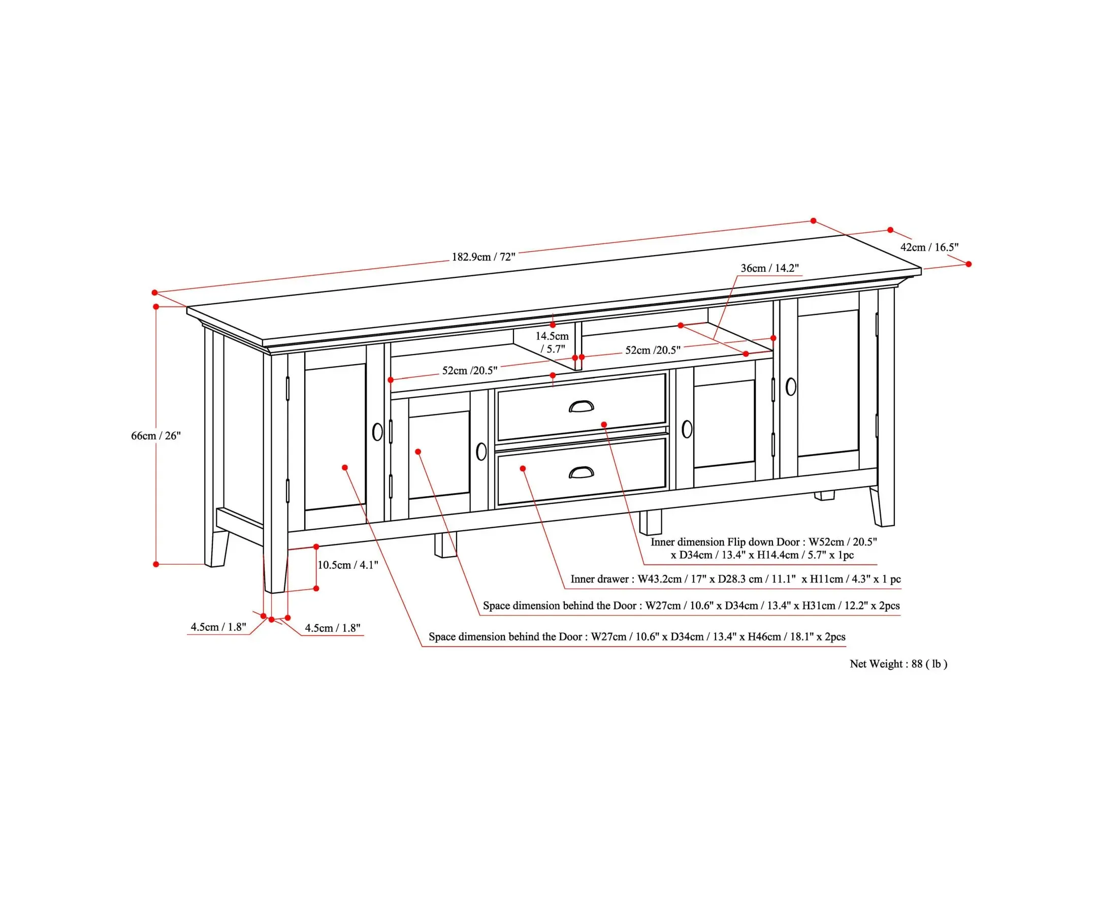 - DIMENSIONS: 16.5" D x 72" W x 26" H