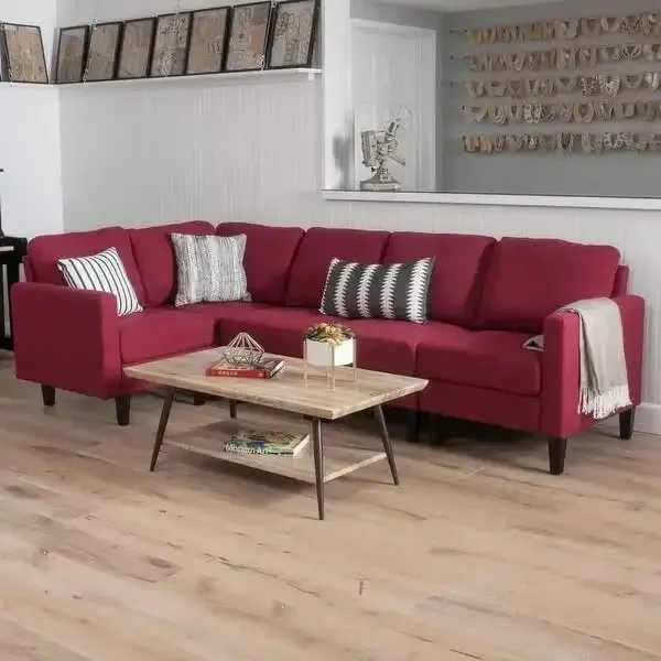 Provide plenty of seating with this 5-piece fabric sofa sectional. Available in four different color options, this set features attached hook-and-loop cushion seats. Featuring five individual pieces that fasten securely together with locking hooks, this Zahra sectional set allows for flexible seating arrangements and repositioning. The seat covers zip off for easy cleaning.
