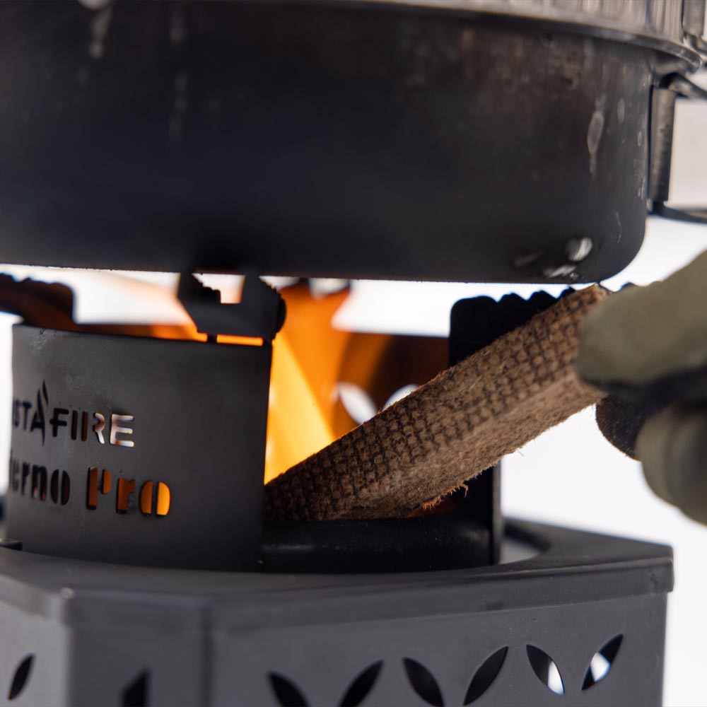- Burn biomass including sticks, twigs, pine cones, leaves - even charcoal - add with forceps (included)