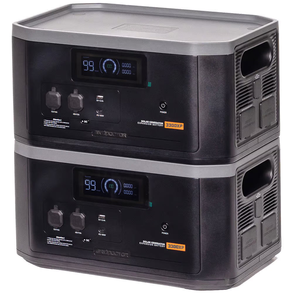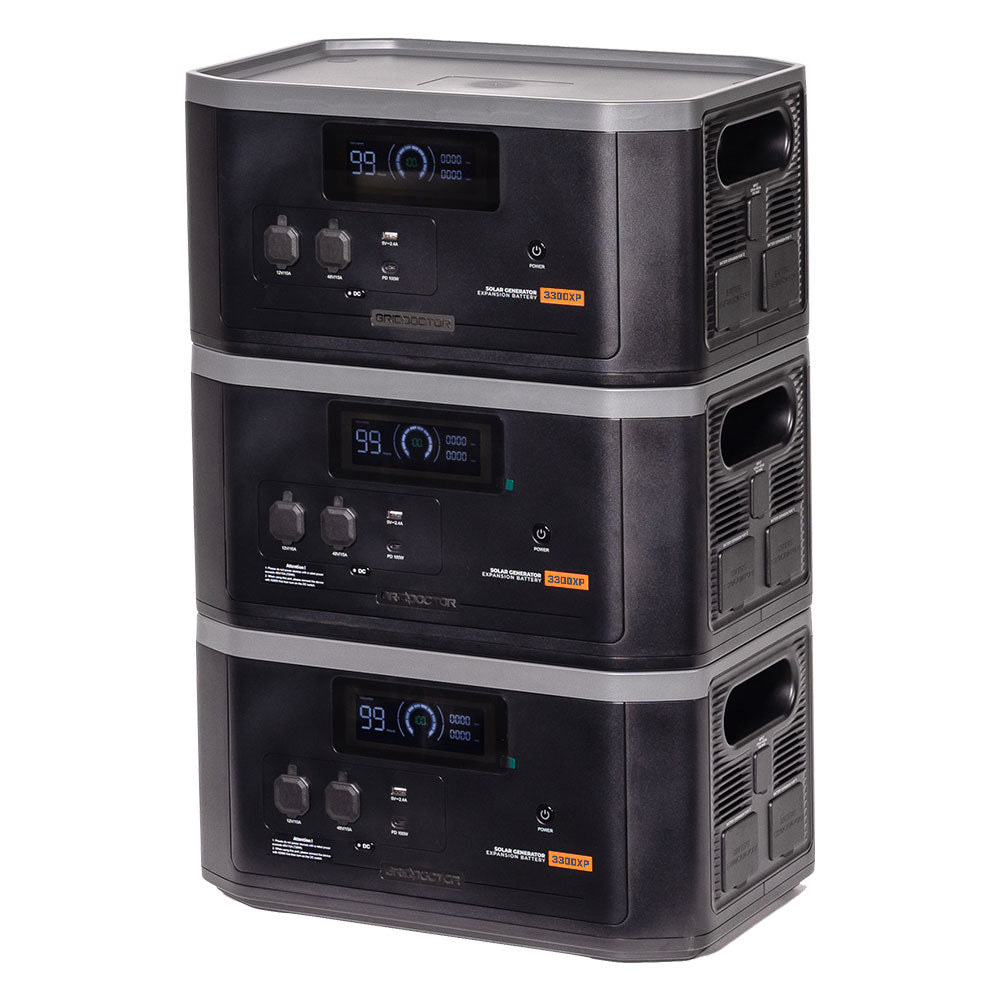 The Grid Doctor 3300XP Expansion Battery is a high-capacity, stackable battery that expands the power of your Grid Doctor 3300 Solar Generator System (including the ) and the Grid Doctor 2200 Solar Generator System. It lets you run your electrical appliances far longer—like having extra fuel to run a gas generator.