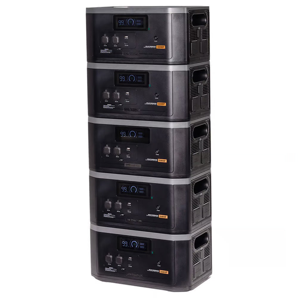 CREATE A 16,384Wh "POWER TOWER" – Stack up to seven of these expansion batteries to build up your own "power tower" for emergencies. Connect them to your Grid Doctor 3300 Solar Generator System to skyrocket your overall power capacity.