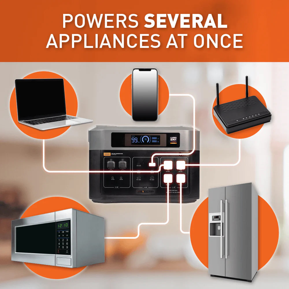 Want to power your entire kitchen? Run multiple space heaters at the same time? Use heavy-duty power tools? Power an entire RV? The NEW Grid Doctor 3300 EMP Solar Generator System packs all power you need to run the BIG stuff: