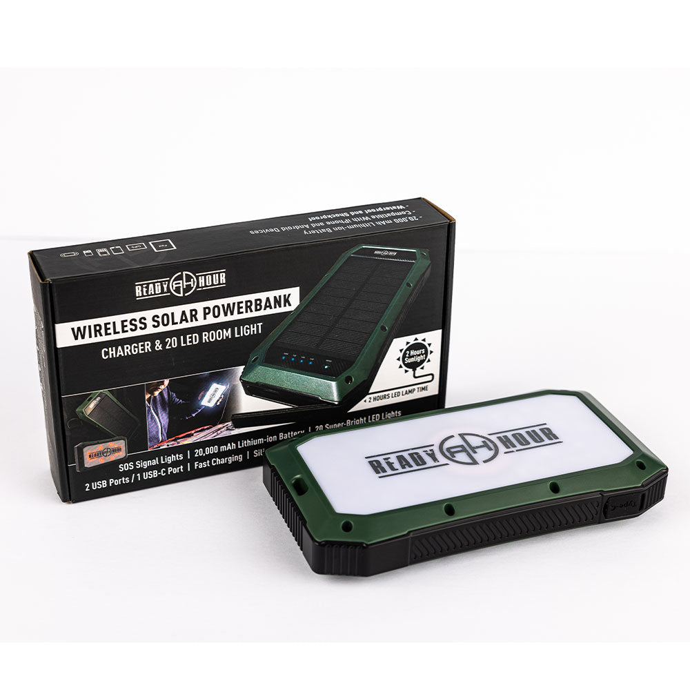 Power and light you can depend on. The Ready Hour Wireless Solar PowerBank Charger & 20 LED Room Light!