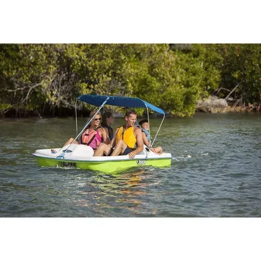 Storage: This pedal boat includes four drink holders and a built-in cooler/storage compartment equipped with solid covers to ensure you have enough room to bring food, beverages and essential gear on your adventure. This pedal boat also includes a foldable canopy to keep you protected on sunny days.